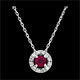 Ein mit Diamanten besetzter Kreis lässten einen Rubin erstrahlen. Mit Kette 42 cm + Verlängerung von 3 cm; 375/-. 12 Diamanten : 0.07 Karat - Weißgold (375/-): 1.7 g. Rubin : 1 - Total: 0.37 Karat Weitere Abmessungen