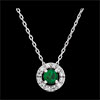 Ein mit Diamanten besetzter Kreis lässt einen Smaragd erstrahlen. Mit Kette 42 cm + Verlängerung von 3 cm; 375/-. 12 Diamanten : 0.07 Karat - Weißgold (375/-): 1.7 g. Smaragd : 1 - Total: 0.26 Karat Weitere Abmessungen