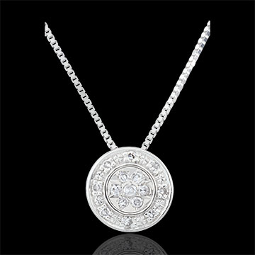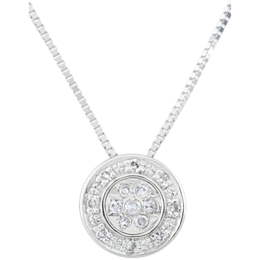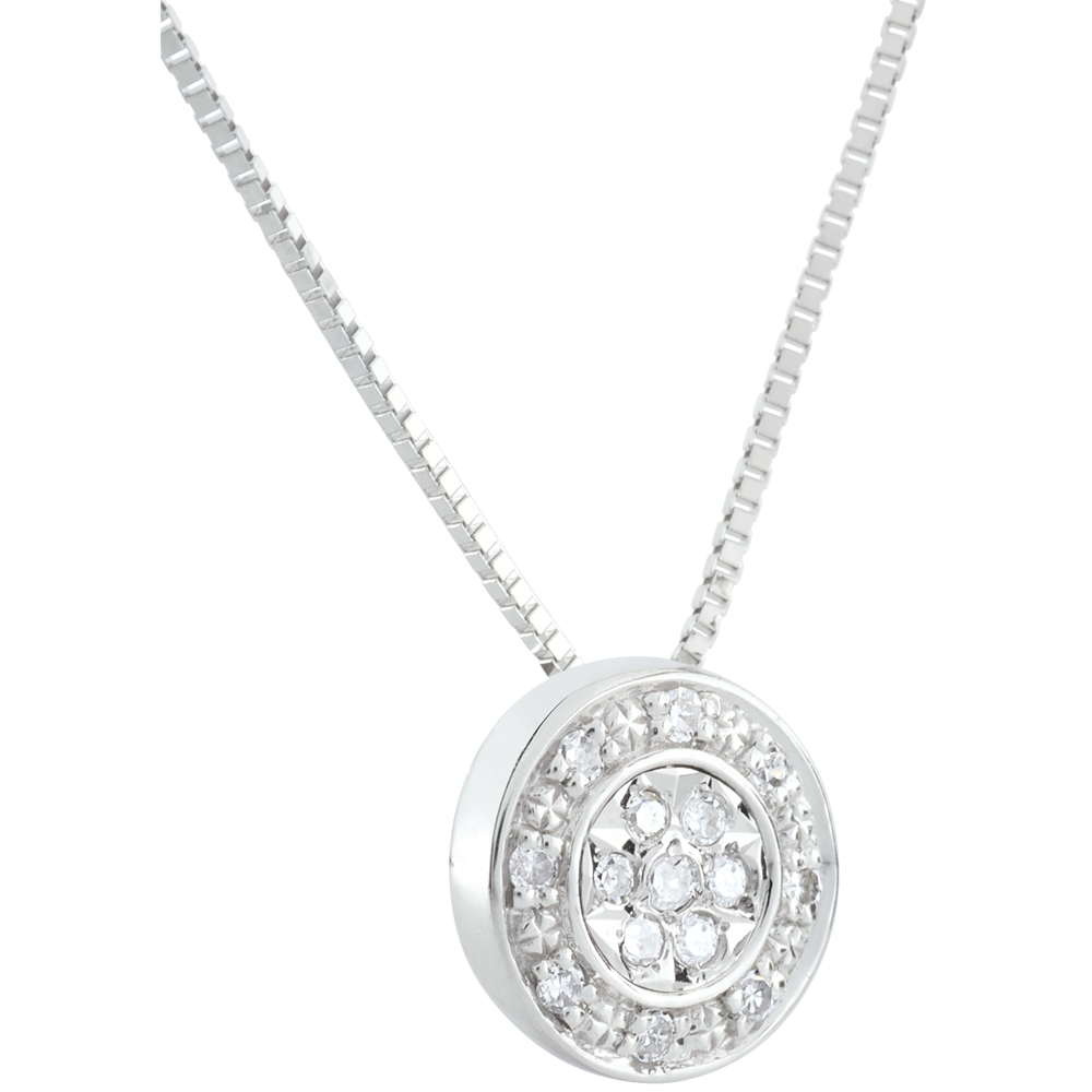 Ein wertvoller Kreis besetzt mit funkelnden Diamanten. Ein klassisches Schmuckstück, das zu jedem Anlass getragen werden kann. Mit einer 42cm Goldkette 375/-. Mit Kette 42 cm + Verlängerung von 3 cm; 375/-. 15 Diamanten : 0.06 Karat - Weißgold (375/-): 1.6 g. Pavé aus natürlichen Diamanten : - Weitere Abmessungen