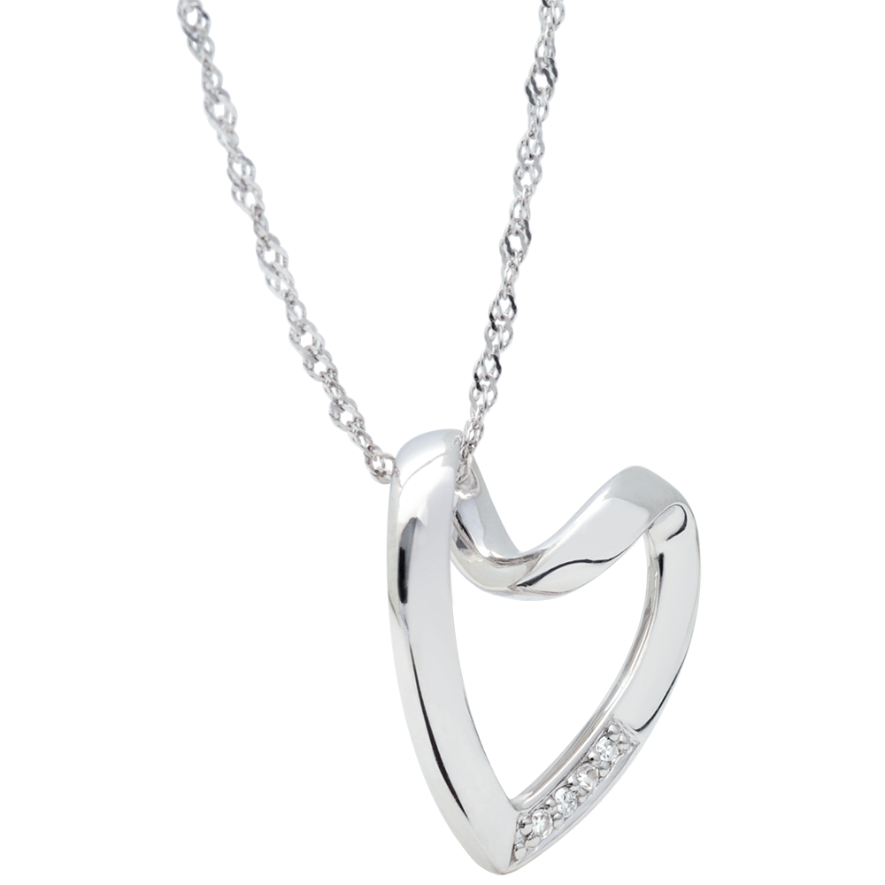 Ein Band aus Gold formt ein Herz, besetzt mit 4 Diamanten. Mit Goldkette 375/-. Mit Kette 42 cm + Verlängerung von 3 cm; 375/-. 4 Diamanten : 0.02 Karat - Weißgold (375/-): 2.3 g. Weitere Abmessungen
