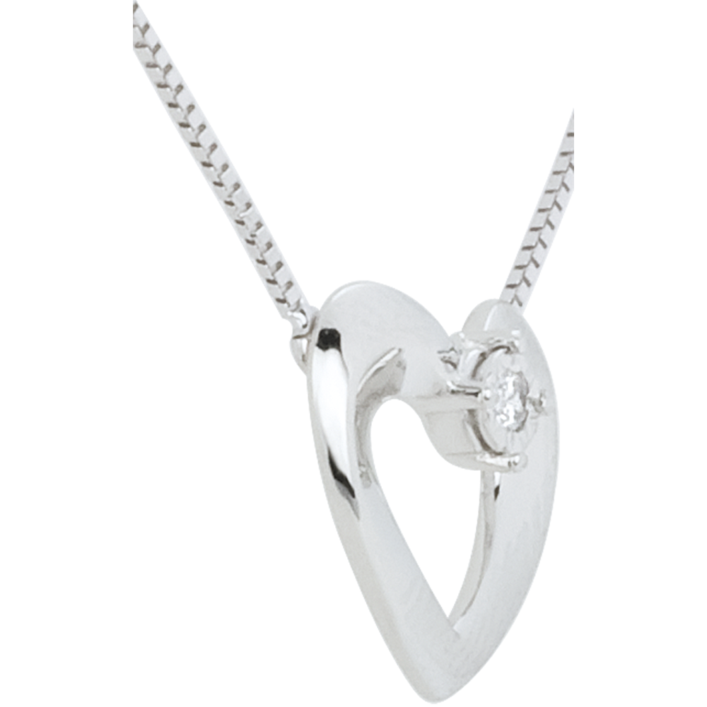 Ein edles Herz aus Weißgold, versehen mit einem Solitär.Mit 42 cm Goldkette 750/-.1 Diamant : 0.02 Karat - Weißgold (750/-) : 1.95 g. Mit Kette 42 cm + Verlängerung von 3 cm; 750/-. 1 Diamant : 0.02 Karat - Weißgold (750/-): 1.8 g. Weitere Abmessungen