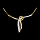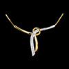 Ein zartes Band aus Weissgold mit Diamanten wird von einem anderen Band aus Gelbgold liebevoll umschlungen. Mit Kette 42 cm + Verlängerung von 3 cm; 750/-. 3 Diamanten : 0.02 Karat - Weiß-und Gelbgold (750/-): 2.4 g. Weitere Abmessungen