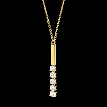 Fünf Diamanten reihen sich wie ein funkelnder Sternenfaden auf Ihrer Haut.Eine feine, schimmernde Kette, die jeden Moment veredelt. Mit Kette 42 cm + Verlängerung von 3 cm; 375/-. Gelbgold (375/-): 1.1 g. Labordiamant : 5 - Total: 0.15 Karat Weitere Abmessungen