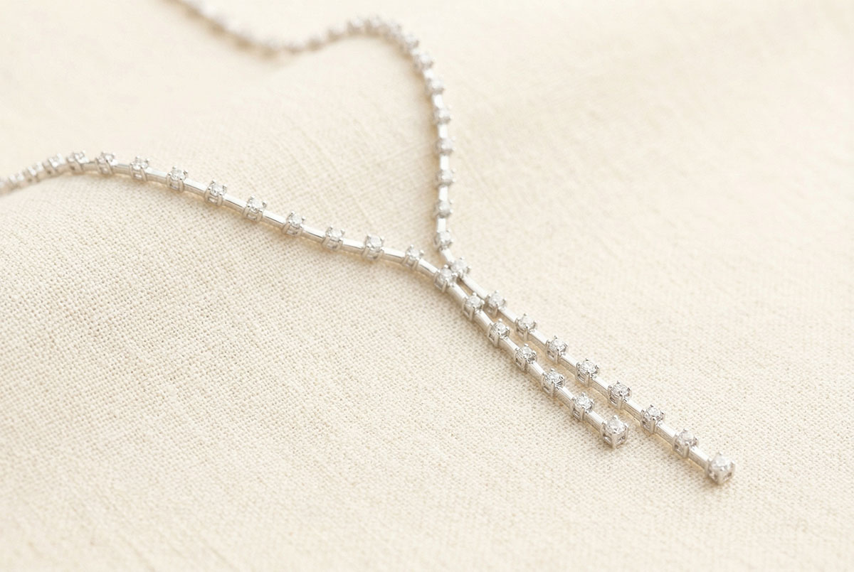 Sie gewinnen diesen Monat die Halskette Vielfalt Nº23 aus 9 K Weiß- und Gelbgold mit Diamanten.