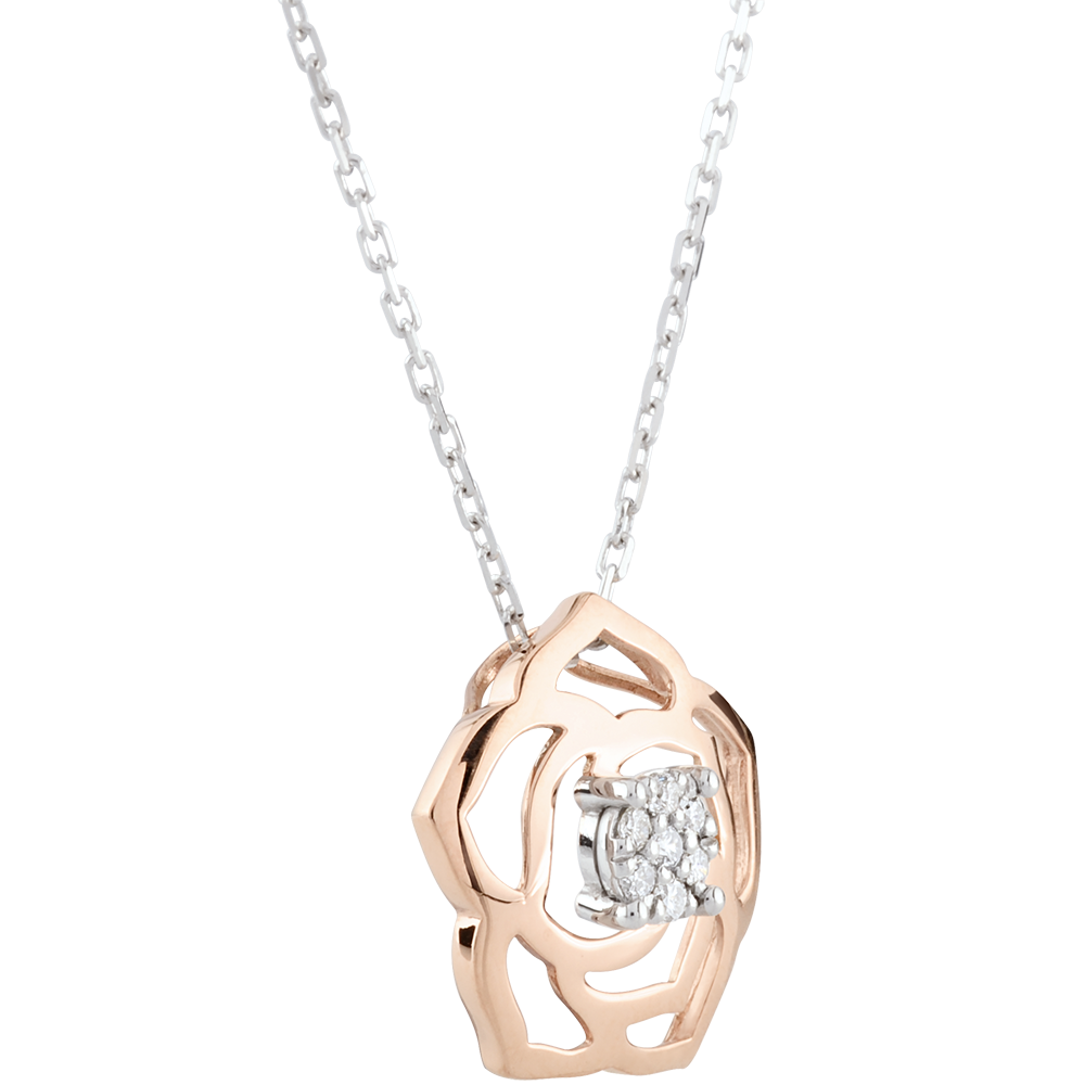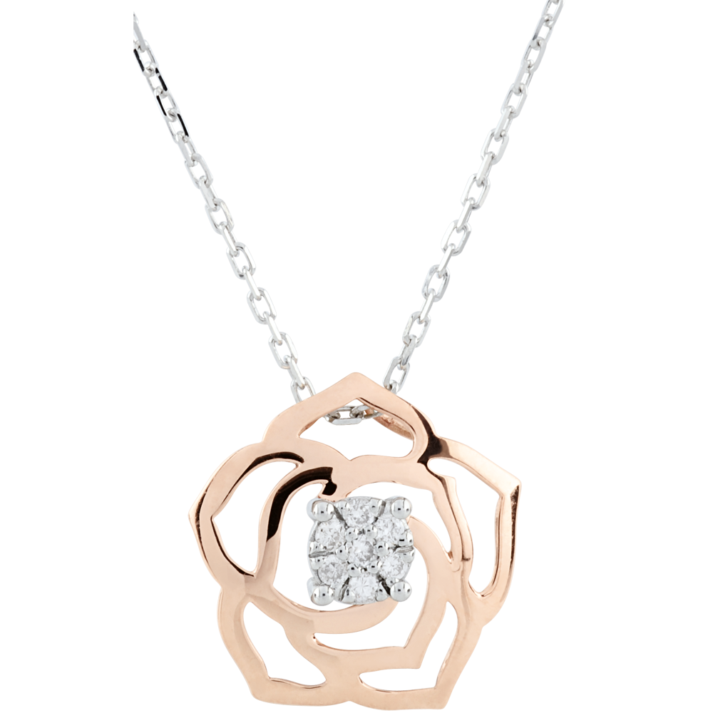 BLüTE NR. 3Collier Blume - Weiß- und Roségold 375/-(9Kt) - Pavé aus natürlichen Diamanten ID : 2629 5 (16)