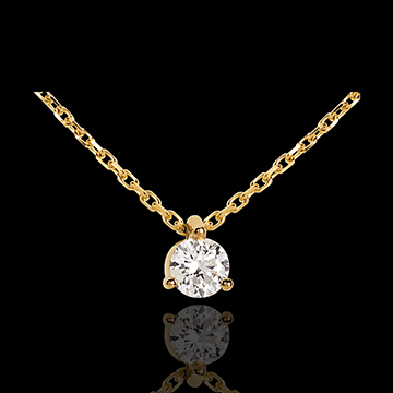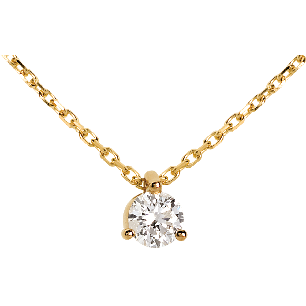 Der funkelnde Diamant in einer 3er Krappenfassung aus Gelbgold verkörpert zarte Eleganz. Mit Goldkette 750/1000. Mit Kette 42 cm + Verlängerung von 3 cm; 750/-. 1 Diamant : 0.21 Karat - Gelbgold (750/-): 1.6 g. Weitere Abmessungen