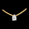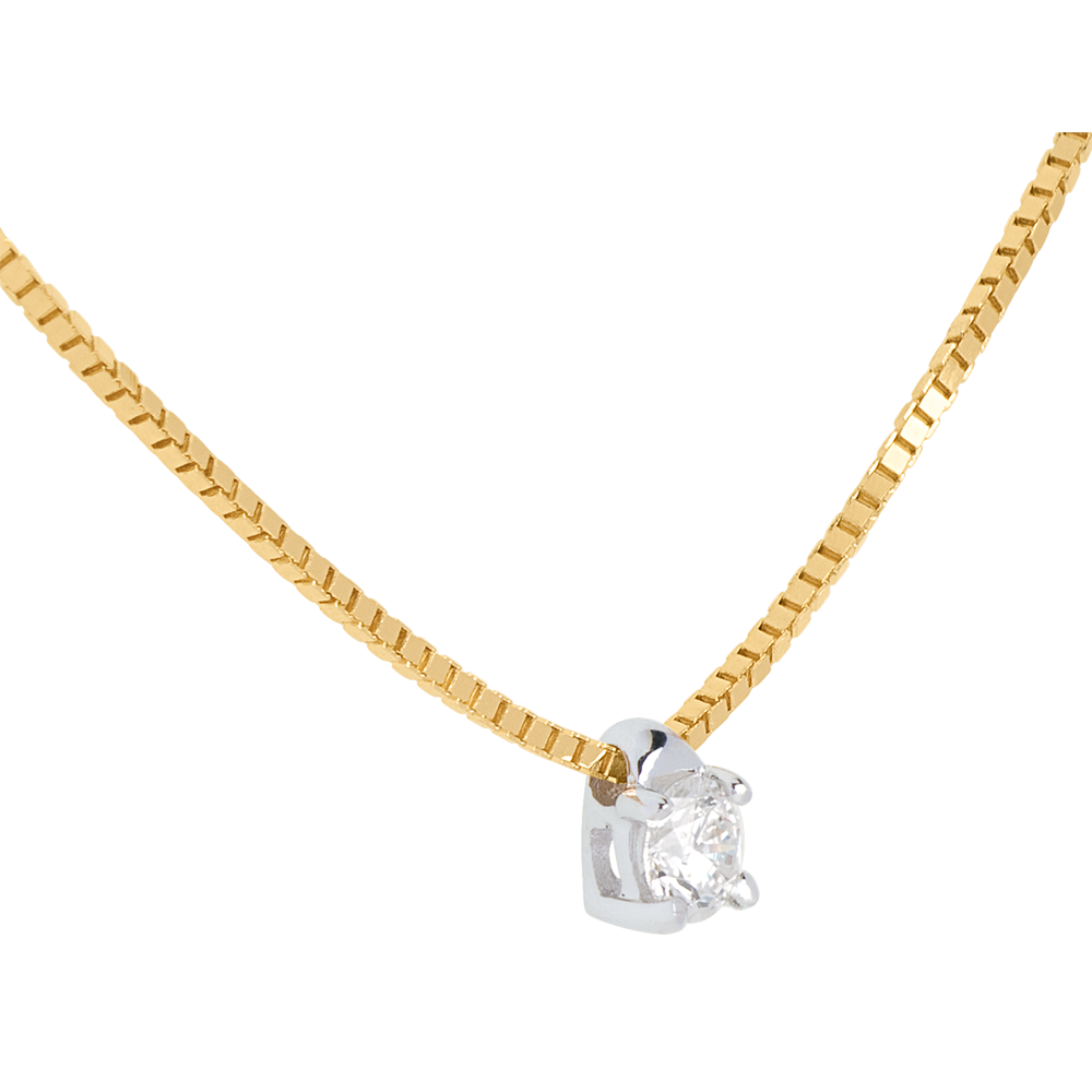 Der funkelnde Diamant in einer 4er Krappenfassung mit gelbgoldener Kette verkörpert zarte Eleganz. Mit Goldkette 750/1000. Kettenlänge von 42 cm. Mit Kette 42 cm + Verlängerung von 3 cm; 750/-. 1 Diamant : 0.11 Karat - Gelbgold (750/-): 1.8 g. Weitere Abmessungen