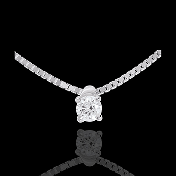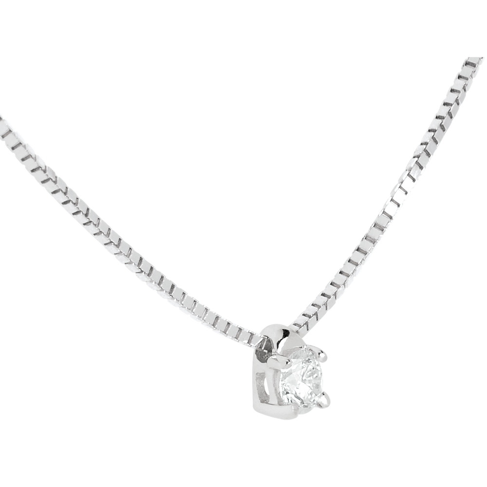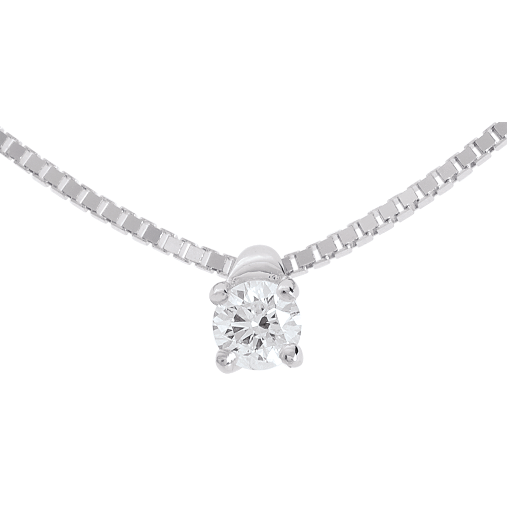 Der funkelnde Diamant in einer 4er Krappenfassung mit weissgoldener Kette verkörpert zarte Eleganz.