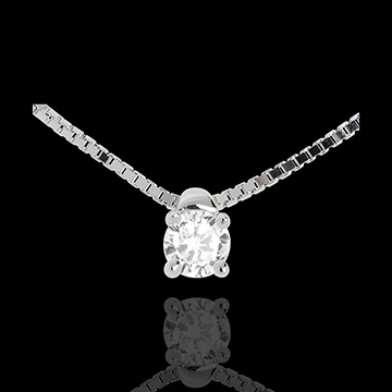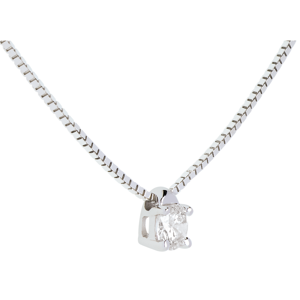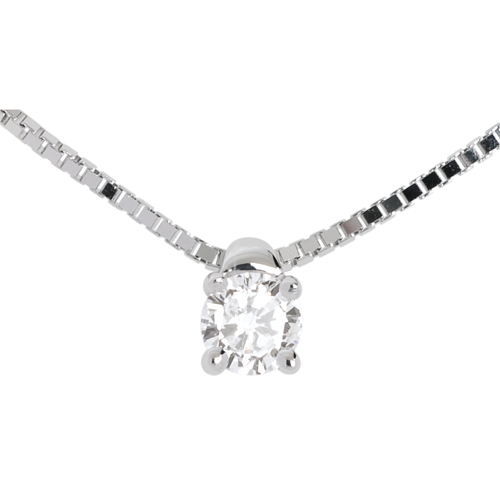 Der funkelnde Diamant in einer 4er Krappenfassung mit weissgoldener Kette verkörpert zarte Eleganz.