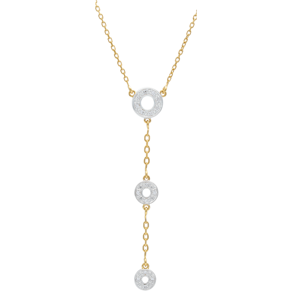 Eine Kreistrilogie aus Weißgold mit Diamanten schmiegt sich an Ihr Dekollté. Ein zeitloser Blickfang. Mit Kette 42 cm + Verlängerung von 3 cm; 375/-. 16 Diamanten : 0.08 Karat - Weiß-und Gelbgold (375/-): 2.2 g. Weitere Abmessungen