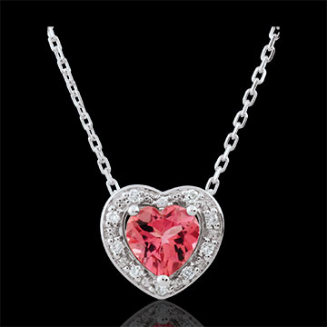 Ein wertvolles Herz aus Weißgold, besetzt mit wertvollen Diamanten und einem prächtigen rosanenTurmalin.