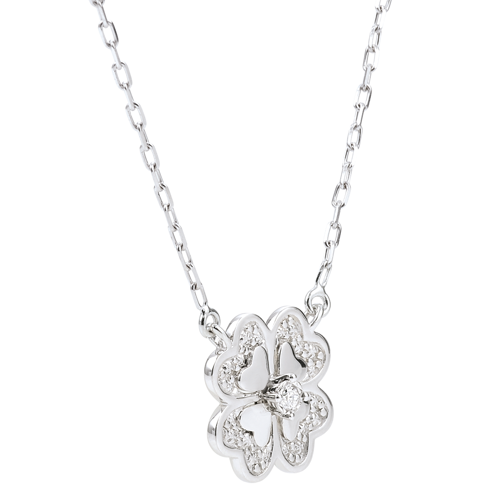 Collier Blüte - Weißgold und Diamanten - Glitzernder Klee