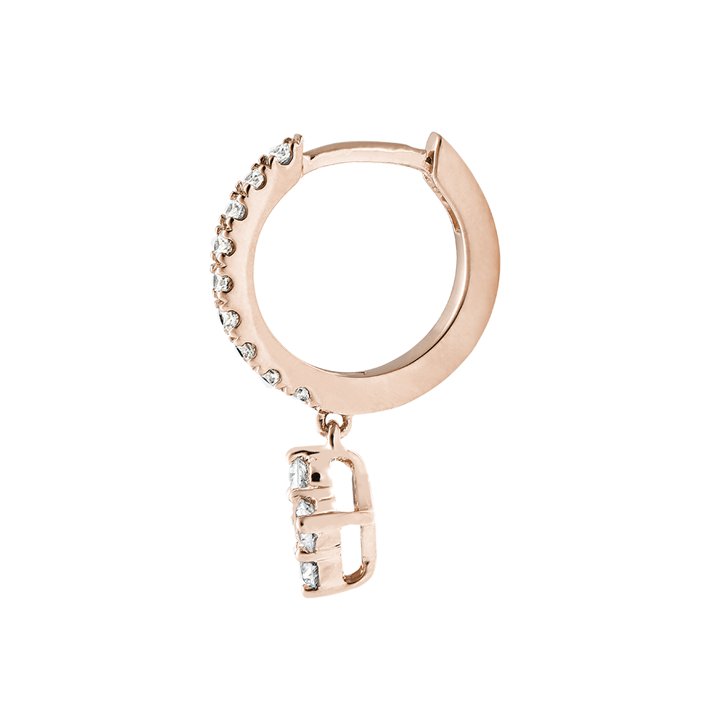 Roségold-Creolen mit halb ausgefasstem Diamanten-Pavé, deren Anhänger mit quadratischer 5-Diamanten-Fassung edle und gleichzeitig moderne Akzente setzt. Anhänger: Breite 5,95mm, Dicke 3,20mm.