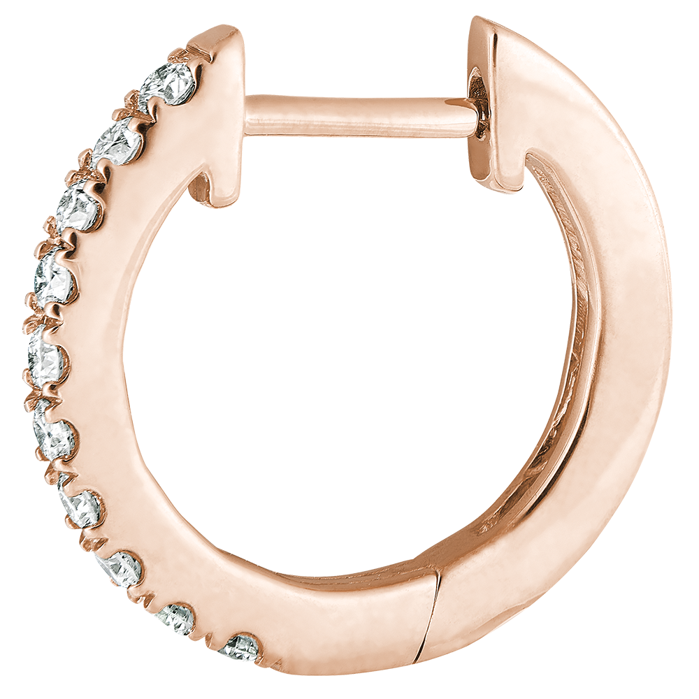 Ein zartes Paar Creolen aus Roségold mit halb ausgefasstem Pavé, das für funkelnde Akzente und eine rockige Note sorgt.