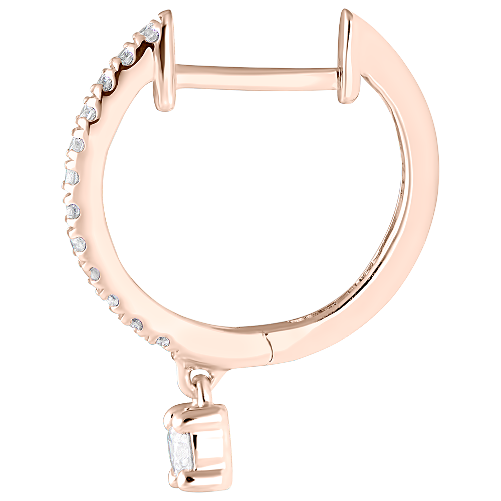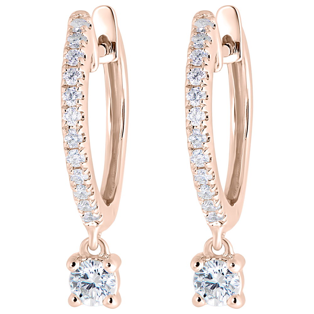 Roségold-Creolen mit halb ausgefasstem Pavé, deren diamantbesetzter Anhänger edle, schillernde Akzente setzt.
