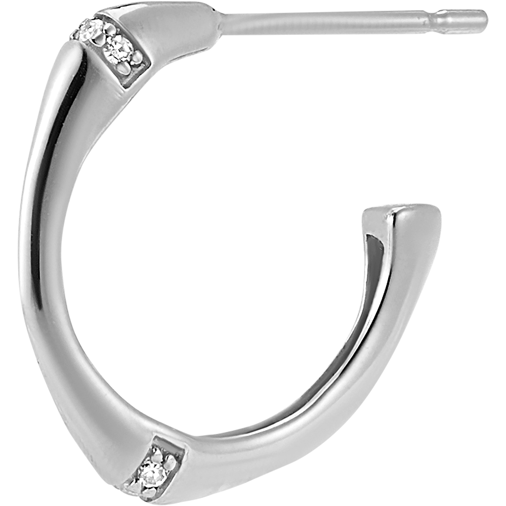 Ein biegsamer und gleichzeitig solider Bambuszweig wird zu Creolen für die Ewigkeit, Durchmesser 14 mm. An den Bambusknoten sind Diamanten in das Gold eingearbeitet 12 Diamanten : 0.04 Karat - Weißgold (375/-): 1.3 g. Weitere Abmessungen