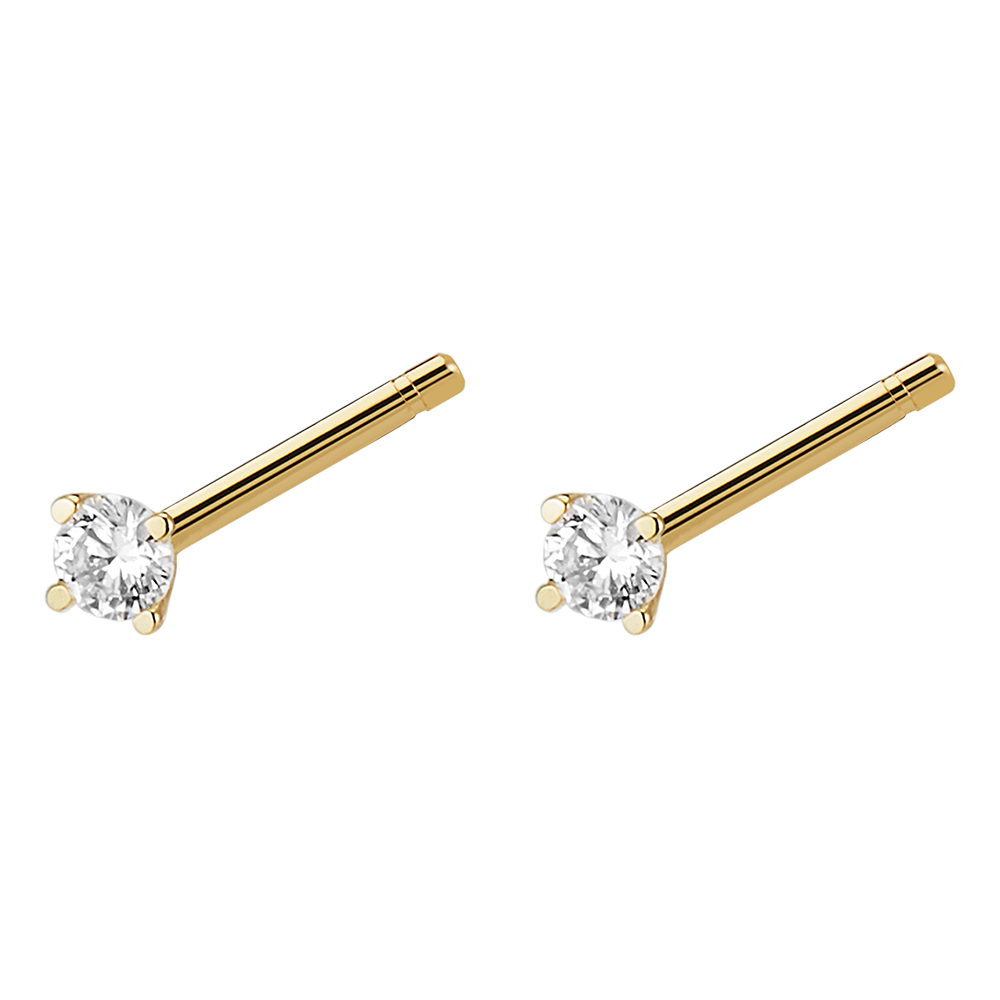 Frisch funkelnde Mini-Ohrstecker mit Diamanten auf Gelbgold. Nach Lust und Laune zum Kombinieren mit anderen Motiven oder einzeln zu tragen. 2 Diamanten : 0.06 Karat - Gelbgold (750/-): 0.8 g. Weitere Abmessungen