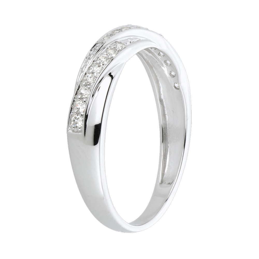 Ein Geflecht aus Weißgold, versehen mit Diamanten, eine zeitlose Kostbarkeit. 25 Diamanten : 0.16 Karat - Weißgold (750/-) : 2.00 g. 25 Diamanten : 0.16 Karat - Weißgold (750/-): 2.1 g. Weitere Abmessungen