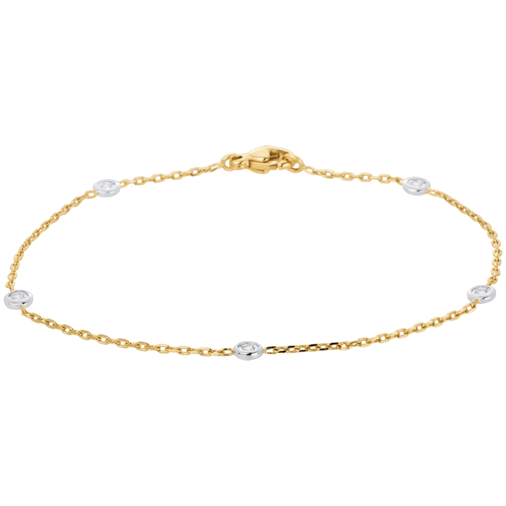 Die Diamanten formen sich zu einem kostbaren Sternbild, verbunden durch eine zarte Kette aus Gelbgold 18cm.5 Diamanten : 0.07 Karat - Weiß-und Gelbgold (750/-) : 1.55 g. 5 Diamanten : 0.07 Karat - Weiß-und Gelbgold (750/-): 1.4 g. Weitere Abmessungen