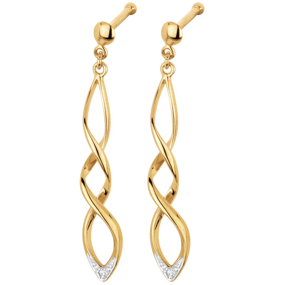 Diese Ohrringe glitzern und funkeln wie Luftschlangen aus Gelbgold und Diamanten. 2 Diamanten : 0.01 Karat - Gelbgold (750/-) : 1.45 g.