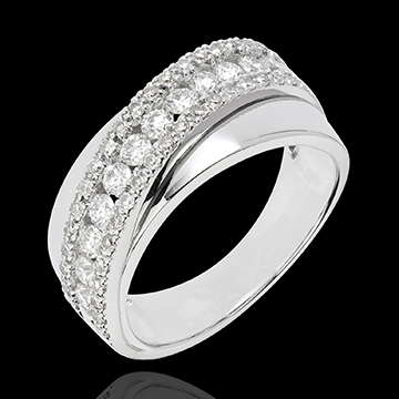 Dieser erlesene Ring ist großzügig mit edlen Diamanten besetzt, welche ein elegantes Band in Weißgold umkreisen. 52 Diamanten : 0.79 Karat - Weißgold (750/-): 6.3 g. Weitere Abmessungen