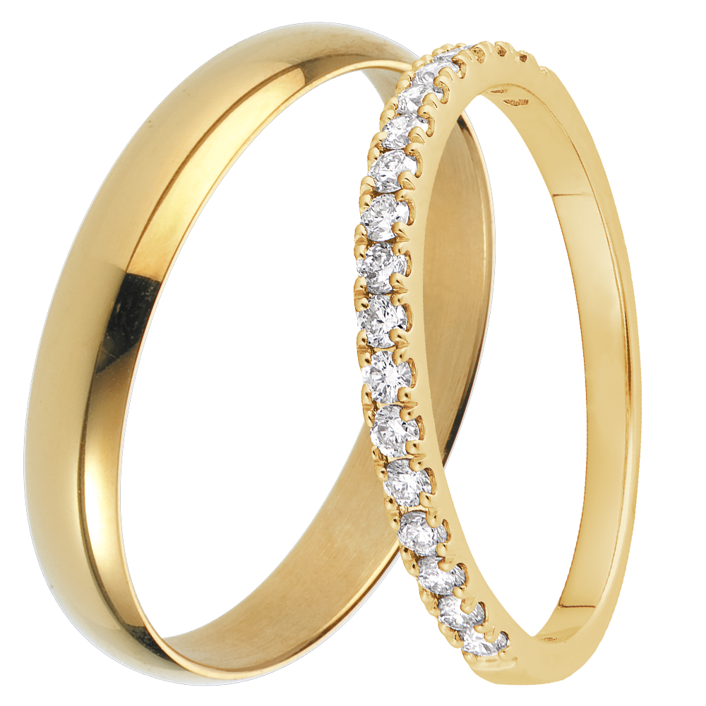 DUO TRAURINGE PURE & BETTINA – GELBGOLD & DIAMANTEN – 18-KARäTIGES GOLD (750/1000)