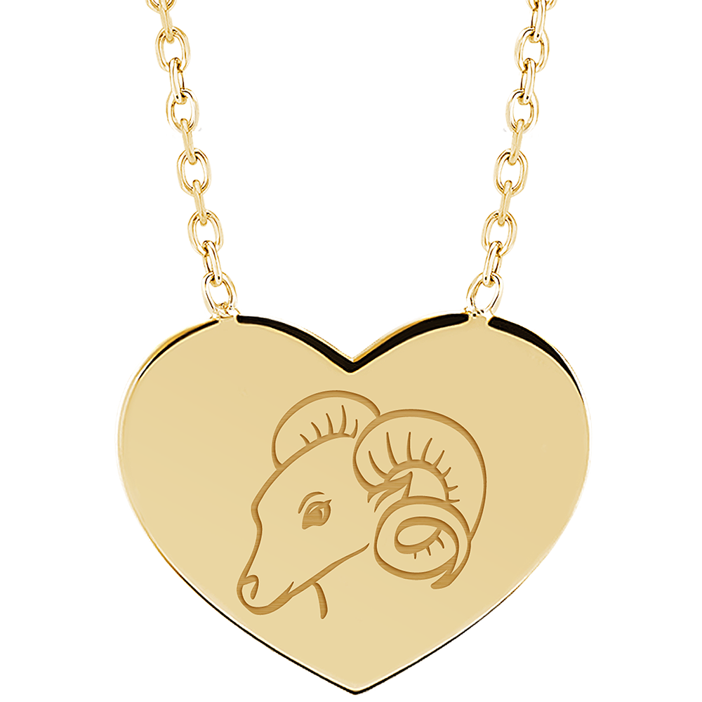 Halskette mit herzförmigem Anhänger mit Gravur - Aries - Gelbgold 375/-(9Kt)