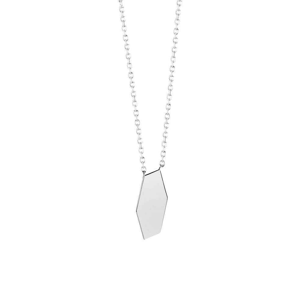 Halskette mit sechseckigem Anhänger zum Gravieren - Weißgold 375/-(9Kt)