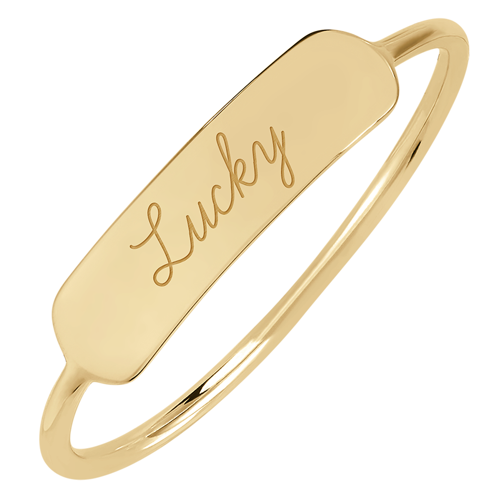 Ja, das rechteckige Medaillon ist für eine individuelle Gravur ausgelegt und macht Ihren Ring einzigartig.
