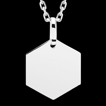 EDENLY YOURS NR. 22Sechseckiger Anhänger zum Gravieren - Weißgold 375/-(9Kt) ID : 4671