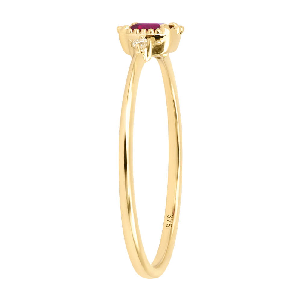 Garance Ring – 9-karätiges Gelbgold, Rubin und synthetische Diamanten