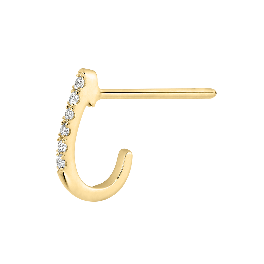 Hübsche halboffene Creolen in Gelbgold, deren zartes Diamanten-Pavé die Ohrläppchen ziert.