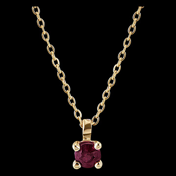 Die Apologie und das Wesentliche eines Rubins, ganz schlicht an einer Kette aus Gelbgold. Ein klassisches und zugleich zeitloses Schmuckstück, das für eine farbenfrohe Note sorgt.