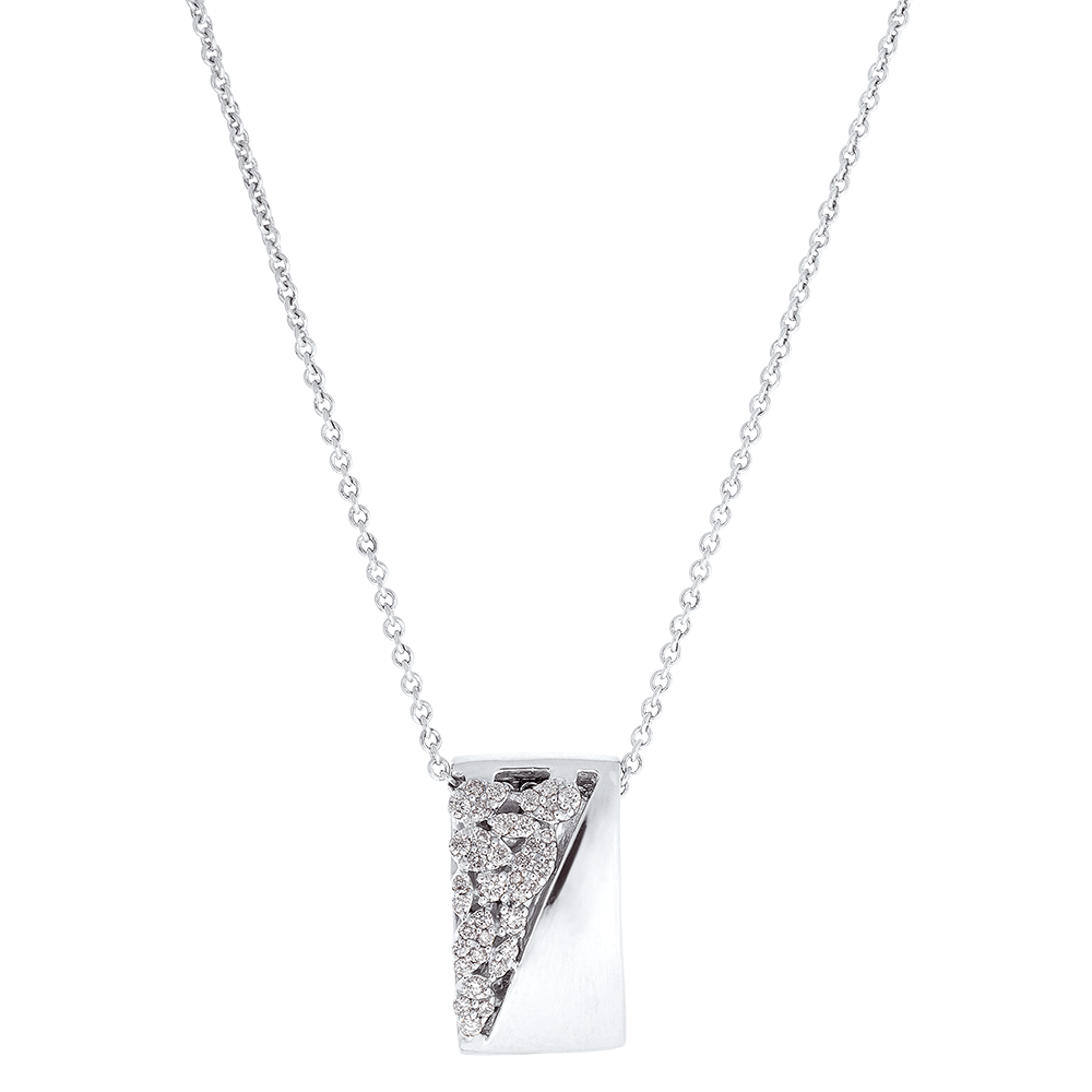 Diese Halskette verbindet mutig die schlichte Eleganz von poliertem 9K Weißgold mit einem feinen Pavé aus 38 weißen Diamanten. Das grafische Design verleiht dem Schmuckstück eine moderne und zugleich dezente Ausstrahlung. Die Kette ist von 42 cm auf 45 cm verstellbar und bietet so einen angenehmen und individuellen Sitz.… Mehr sehen Technische Informationen