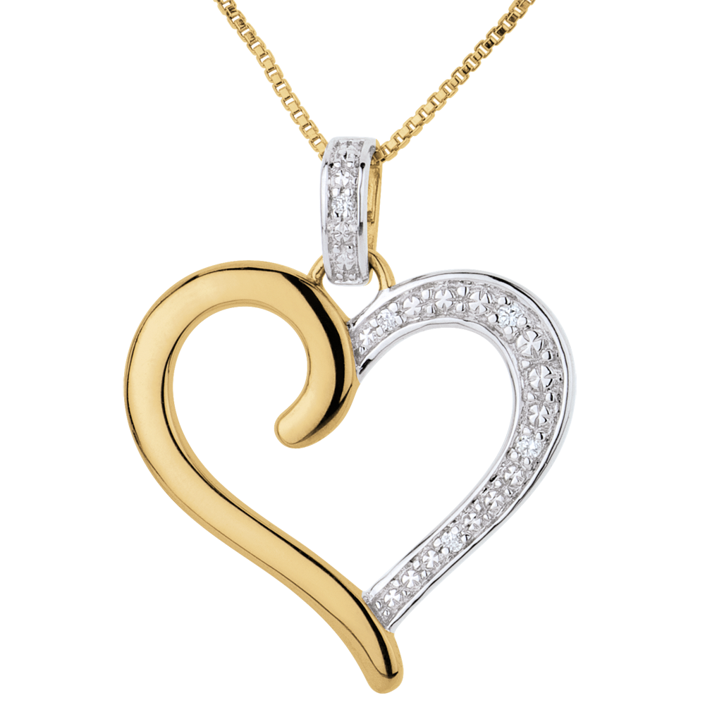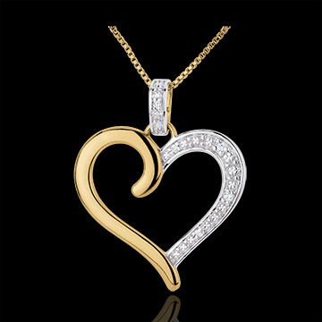 Ein romatischer Herzanhänger im Einklang mit Gold und Diamanten. Ohne Kette. 5 Diamanten : 0.03 Karat - Weiß-und Gelbgold (750/-): 1.7 g. Weitere Abmessungen