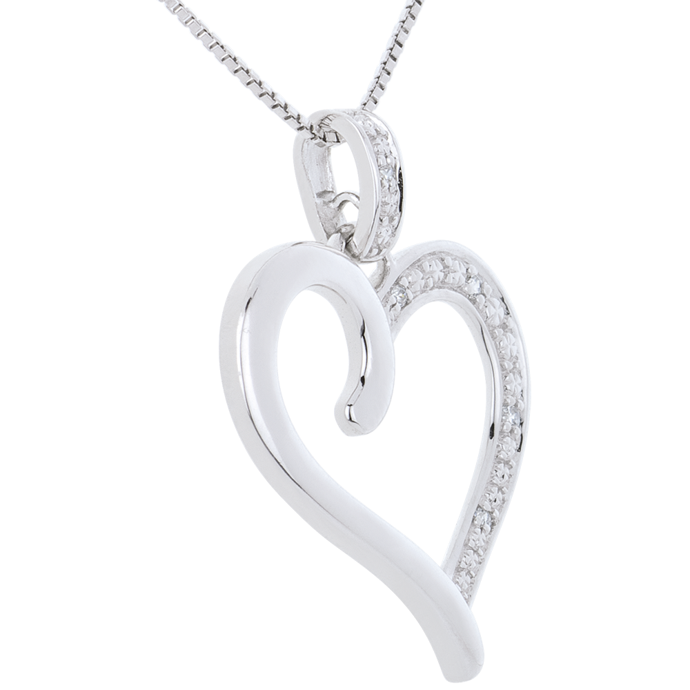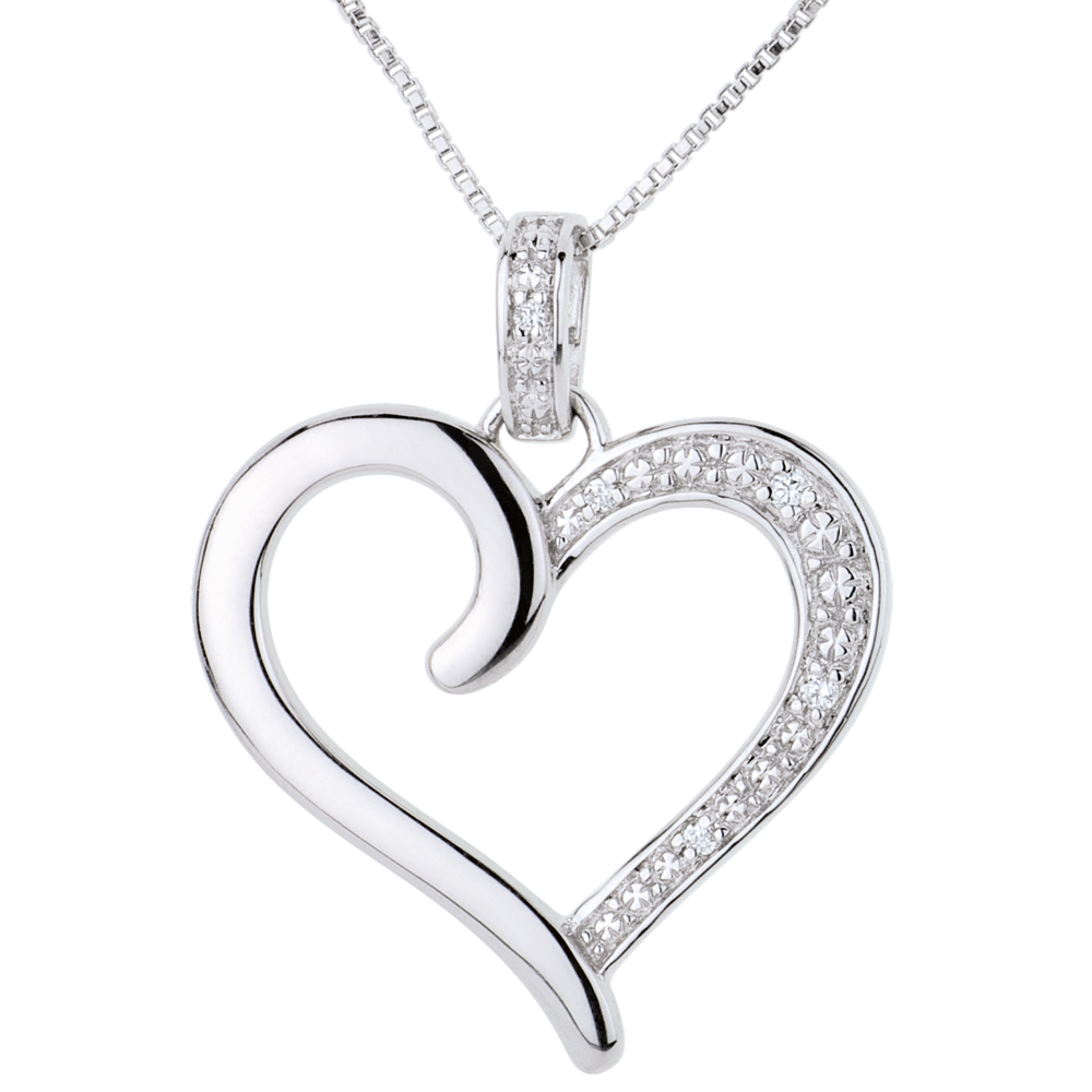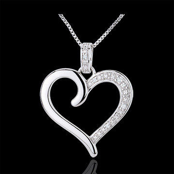 Ein romatischer Herzanhänger im Einklang mit Weißgold und Diamanten. Ohne Kette. 5 Diamanten : 0.03 Karat - Weißgold (375/-): 1.3 g. Weitere Abmessungen