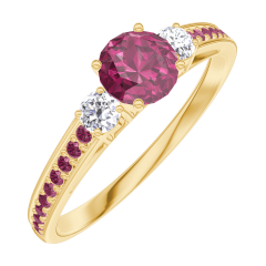 « L'ATELIER » NR. 160630Ring Gelbgold 375/-(9Kt) - Rubin rund 0.3 Karat - Seitliche Steine Diamant - Fassung Rubin 4.5 (42)