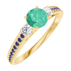 « L'ATELIER » NR. 161834Ring Gelbgold 375/-(9Kt) - Smaragd rund 0.3 Karat - Seitliche Steine Diamant - Fassung Blauer Saphir 4.5 (37)