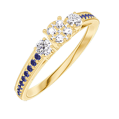 « L'ATELIER » Nº209034Ring Gelbgold 375/-(9Kt) - Pavé aus natürlichen Diamanten rund entsprechend 0.3 - Seitliche Steine Diamant - Fassung Blauer Saphir 4.5 (36)