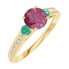 « L'ATELIER » NR. 163085Ring Gelbgold 750/-(18Kt) - Rubin rund 0.5 Karat - Seitliche Steine Smaragd - Fassung Diamant 4.5 (16)