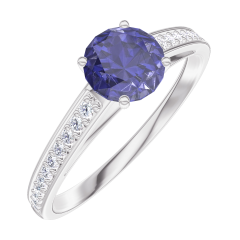 « L'ATELIER » NR. 163607Ring Weißgold 750/-(18Kt) - Blauer Saphir rund 0.5 Karat - Fassung Diamant 4.5 (16)