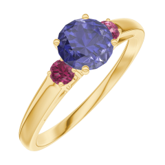 « L'ATELIER » NR. 163641Ring Gelbgold 750/-(18Kt) - Blauer Saphir rund 0.5 Karat - Seitliche Steine Rubin 4.5 (16)