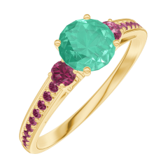 « L'ATELIER » NR. 164250Ring Gelbgold 375/-(9Kt) - Smaragd rund 0.5 Karat - Seitliche Steine Rubin - Fassung Rubin 4.5 (16)