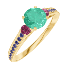 « L'ATELIER » NR. 164254Ring Gelbgold 375/-(9Kt) - Smaragd Rund 0.5 Karat - Seitliche Steine Rubin - Fassung Blauer Saphir 4.5 (21)
