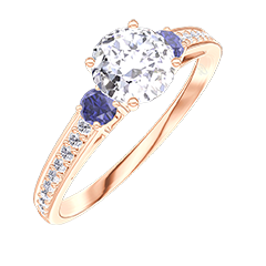 « L'ATELIER » NR. 173992Ring Roségold 750/-(18Kt) - Diamant rund 0.5 Karat - Seitliche Steine Blauer Saphir - Fassung Diamant 4.5 (16)