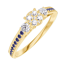 « L'ATELIER » Nº209634Ring Gelbgold 375/-(9Kt) - Pavé aus natürlichen Diamanten rund entsprechend 0.5 - Seitliche Steine Diamant - Fassung Blauer Saphir 4.5 (16)