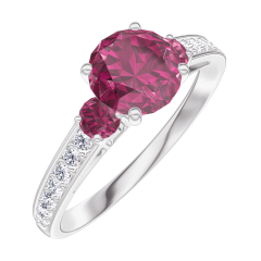 « L'ATELIER » NR. 165447Ring Weißgold 750/-(18Kt) - Rubin rund 0.7 Karat - Seitliche Steine Rubin - Fassung Diamant 4.9 (7)