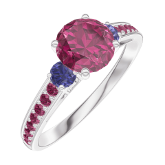 « L'ATELIER » NR. 165472Ring Weißgold 375/-(9Kt) - Rubin rund 0.7 Karat - Seitliche Steine Blauer Saphir - Fassung Rubin 4.9 (7)