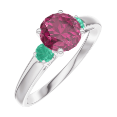 « L'ATELIER » NR. 165483Ring Weißgold 750/-(18Kt) - Rubin rund 0.7 Karat - Seitliche Steine Smaragd 5 (7)
