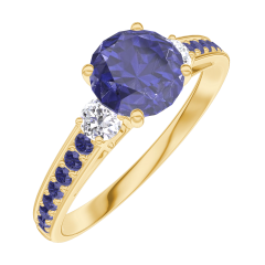 « L'ATELIER » NR. 166034Ring Gelbgold 375/-(9Kt) - Blauer Saphir Rund 0.7 Karat - Seitliche Steine Diamant - Fassung Blauer Saphir 4.9 (7)